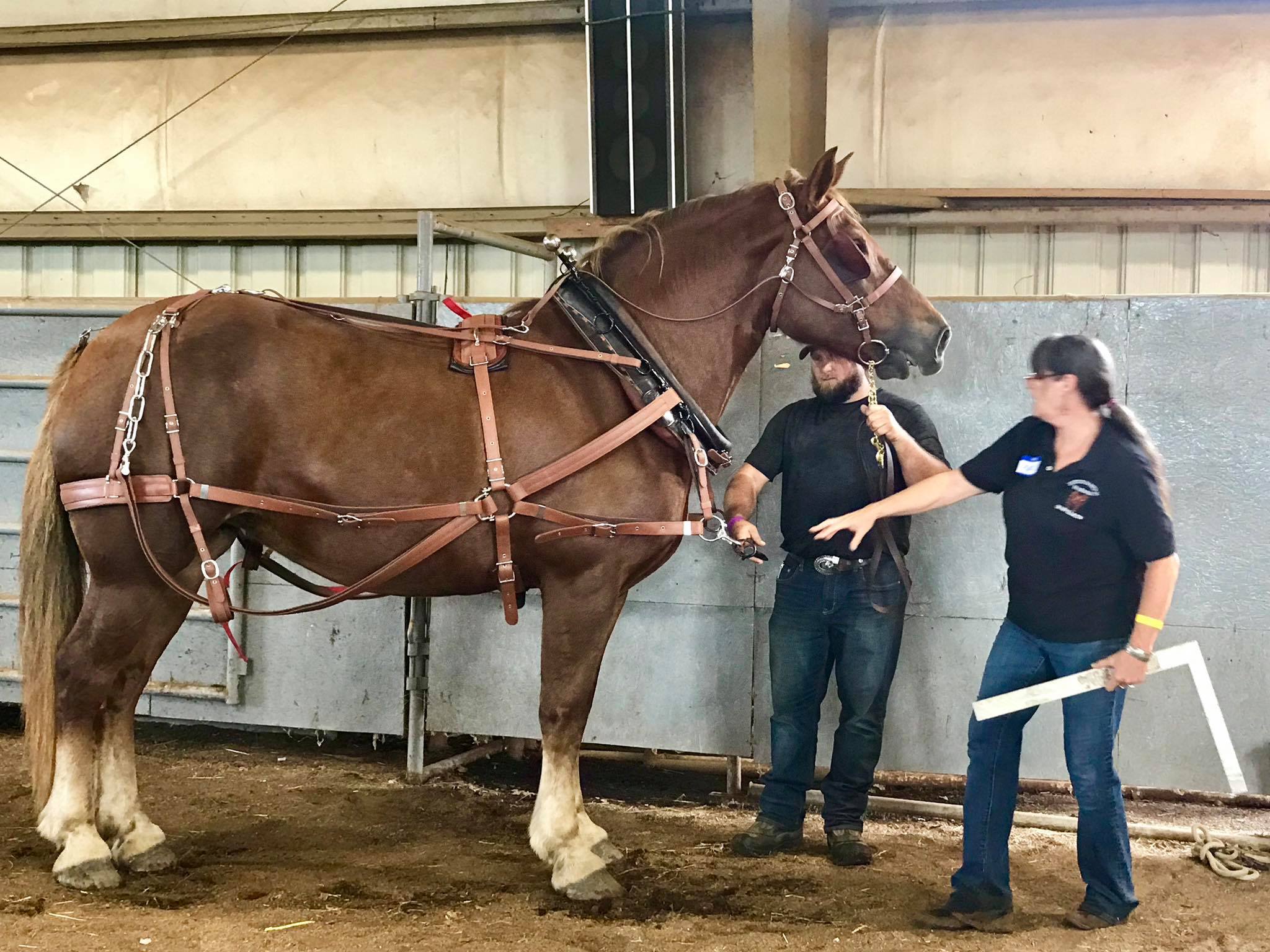 Job 1/ I relocated from West Palm Beach Florida with my newly acquired husband in 1983. I had been a Polo groom at that time, and we moved to Renegade Mountain Resort. We soon had a few retired polo ponies for me to knock around on and then it was suggested to me if I would consider getting a team of draft horses and giving tours around the mountain top. The team came with a tattered harness set so looking for someone to repair what I had led me the local harness maker. We hit it off instantly and she asked me to apprentice in her shop with a few other ladies. After 2 years of making less and less mistakes 😉 I was offered the 10-year-old business to take over. I mortgaged my little house on the mountain with my husband’s blessing and finally decided what I wanted to be when I grew up. I’ve been custom making and fitting harness now for over 33 years. These folks know me as the lady who makes harness in Tennessee