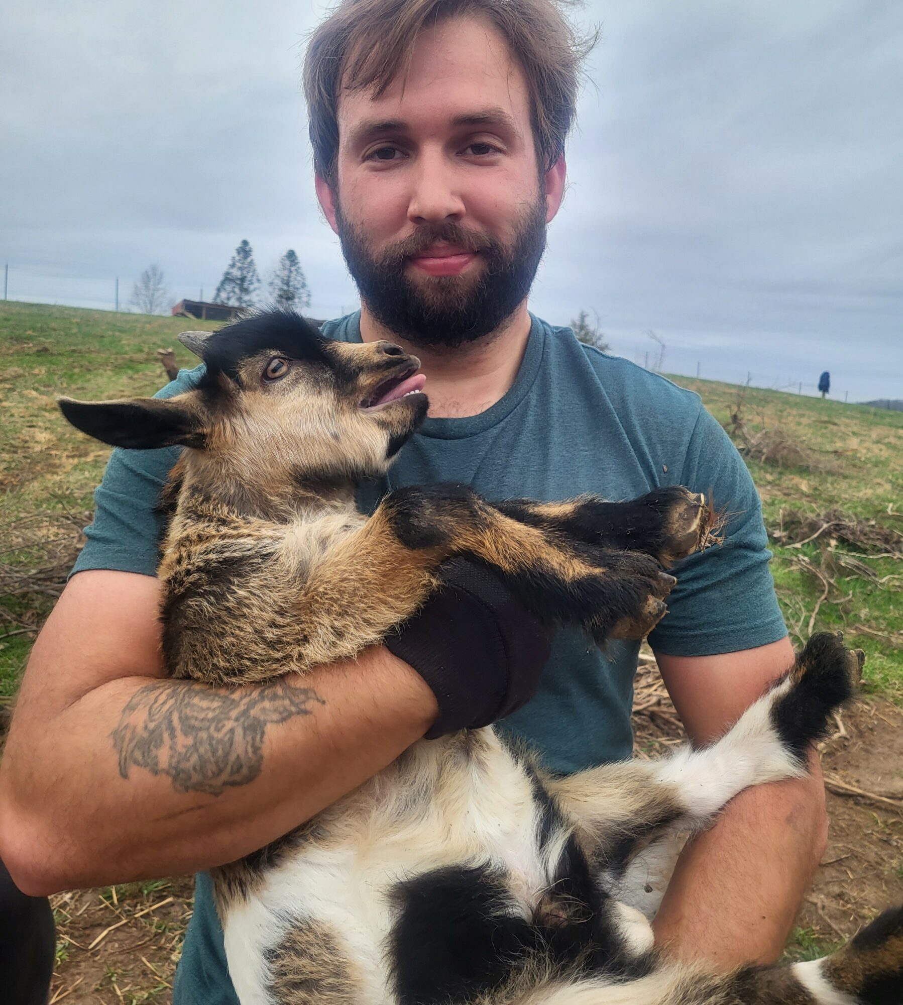 When I became medically retired from the Army in 2019 after seven years of service, I was contemplating what I would do with my life. Growing up my mother had always worked with plants at a nursery in Sebring, FL, and I enjoyed the work that was brought about when I had summer jobs moving dirt, giant pots, and tending to the overall structure of the nursery. Did I ever think I would be turning plants into a full-time job in my 30’s – no, but after all the ups and downs life has thrown me so far, farming just makes sense to me now. Being considered disable, working the land gives me a sense of purpose and allows me to put in hard work for a goal I believe in. In 2020 I found the perfect piece of land to start my journey in Philadelphia, TN. The 56-acre property was rolling with trees, but I have since cleared sections of the land and built animal pastures for our chickens, goats and pigs, barns to store equipment and feed, and hopefully soon, an aquaponics facility that will allow for year-round gardening. I met my wife in 2020 as well, and together we have begun to build a brand for our farm and sell produce online. She is an artist and just all-around knowledgeable human being. She created our logo and does all our marketing and branding for our products while running her studio out of the farm – Dust to Dust. If you ask her, she grew up wanting to be a vet but life had other plans that led her to art school and teaching. She will laugh and tell you it was her side quest since she is back to raising and caring for animals and learning all about plants. With both of our skill sets, Rising Moons Farms won’t just be another farm, we have big dreams for it to become an education center for all those wanting to learn about sustainable farming, a place for folks to learn about where our food comes from, and more importantly a center for the community to gather, talk, and learn from each other while eating healthier.