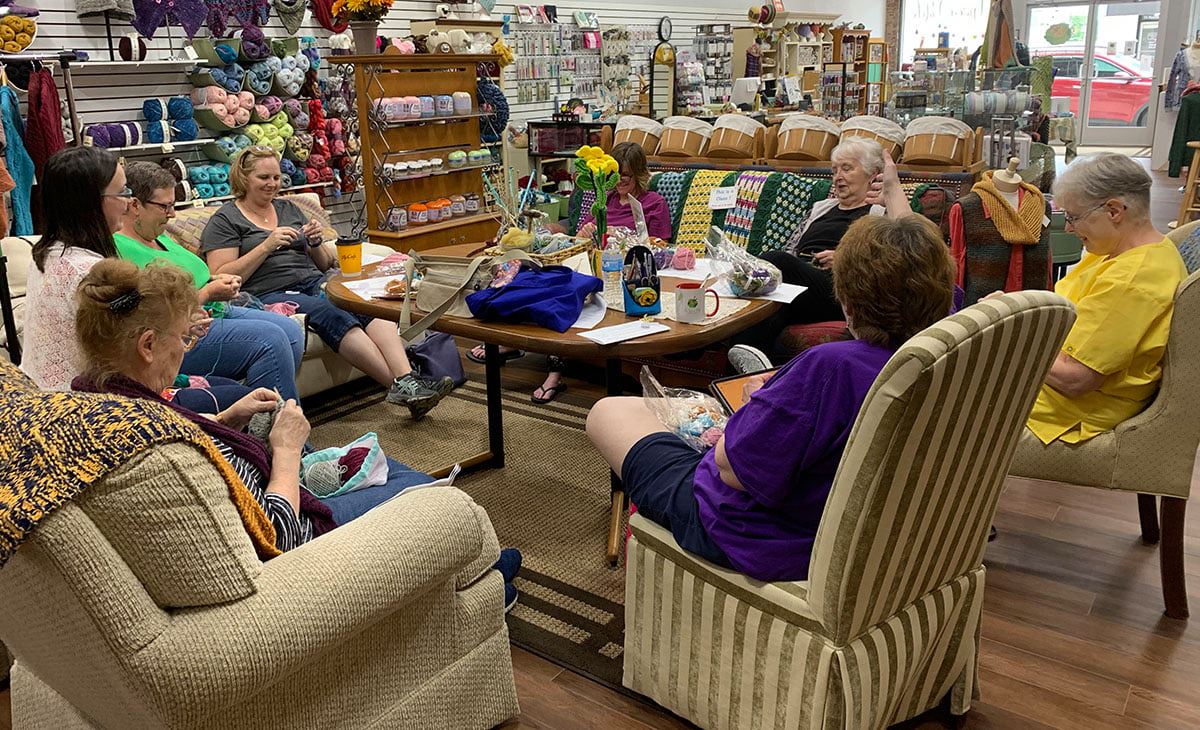 At the Yarn Patch, we strive to create a community. We have open craft times where people can bring their project and socialize. I love that knitting and crocheting is a way to connect with others and make new friends. We also love to see the amazing, creative creations people make, whether it’s a needle felted figurine, skein of hand-spun yarn, woven blanket, embroidered picture, crocheted poncho or knit hat, it’s fun to see what others are doing with fiber. We are happy to enable that creativity and community.