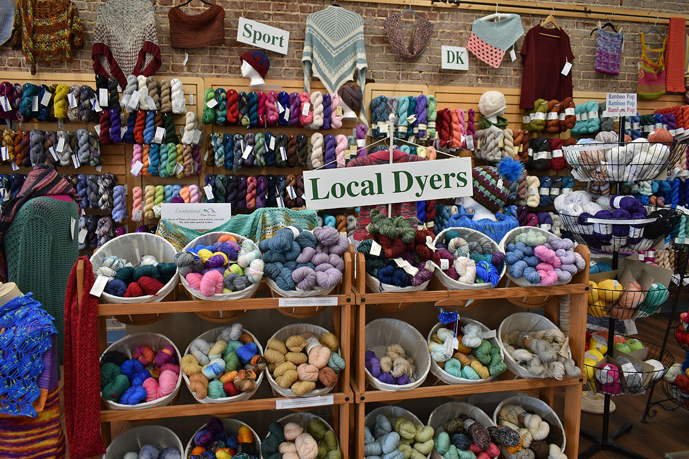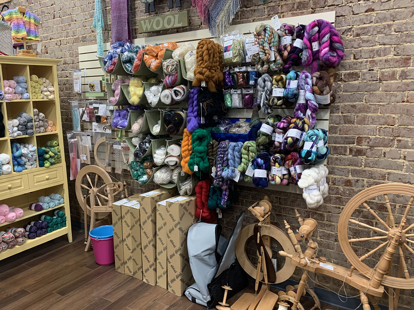 I purchased the Yarn Patch in 2019. I had one year to get my feet underneath me. Then, right about the time I thought, “You know what, I’ve got this, I can do this,” COVID hit. Luckily, we had just got our online shop up online in January, so we were able to bring our shop to our customers using Facebook lives. We were able to snag our new downtown location when the current buyer backed out due to COVID. We renovated this 1922 building through the slow year and were able to make the perfect space for our shop, open and full of natural light no matter where you are in the shop. During the process, we removed layers of plaster and drop ceilings to reveal the original brick walls and ornate tin tiles. The result is a 2,800-square-foot space that perfectly blends historical charm with modern warmth—a creative sanctuary for locals and travelers alike.