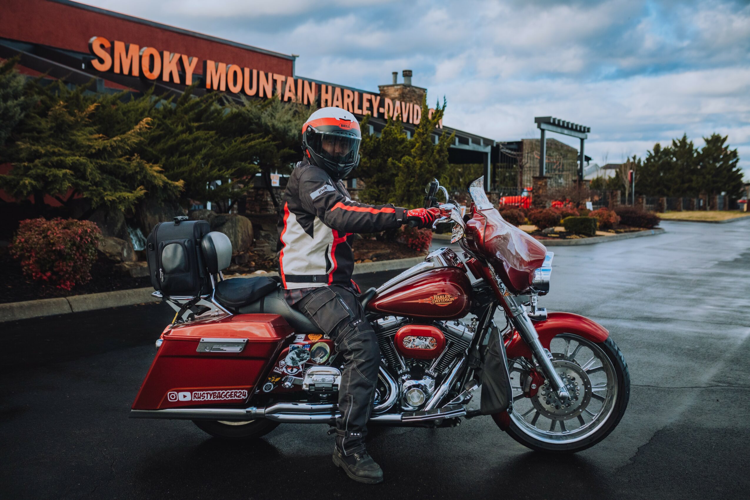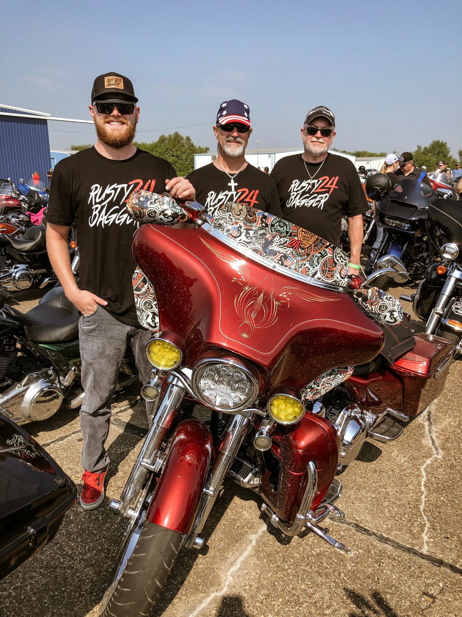 I worked in the wash bay for three years. I upgraded to a 2005 Yamaha Road Star, which was a bit more powerful during that time. After I graduated college in 2016, I got a position in the Marketing Department as Internet Marketing Coordinator, and that’s when I got my beloved 2010 Harley-Davidson Electra Glide Classic, a.k.a. Ruby. This is where the RustyBagger24 brand started to take shape. I created an Instagram page and YouTube channel and started taking pictures and videos of me and my bike and the adventures that it took me on. During the past few years, I’ve been able to do and see some amazing things and places due to my social media presence.