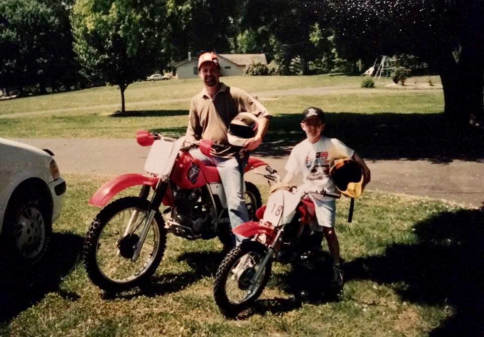 When I was around three or four years old, my dad bought me my first dirt bike. It was a little automatic Honda CRF 70. After dipping my toes into the world of riding, I graduated up to a Honda CRF 150. I thought I was hot stuff then! My dad ended up getting a dirt bike of his own, and we rode around our property all the time together.