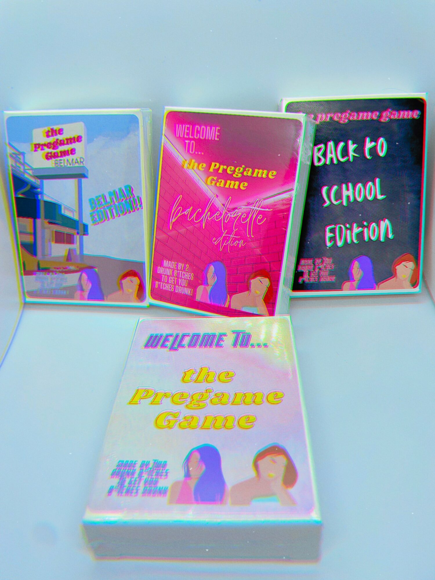 We started the Pregame Games in February 2021. Both of us had shore houses in Belmar, NJ the summer of 2020 during Covid. We spent most of our time down there and played every drinking game over and over again. Ileana wanted to make her own game and Sarah also agreed she did so we started building a deck just for the two of us.